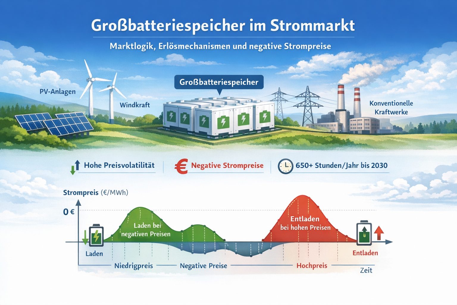 Marktlogik, Erlösmechanismen und Rolle negativer Strompreise